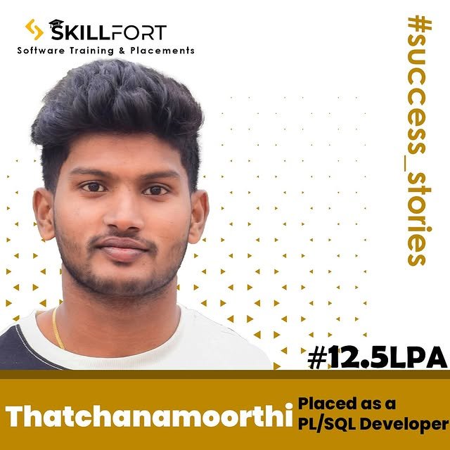 We are proud to announce that our student *THARCHANAMOORTHI* has been successfully placed with a package of *βΉ12.5 Lakhs* per annum as a *PLSQL DEVELOPER* ππΌ