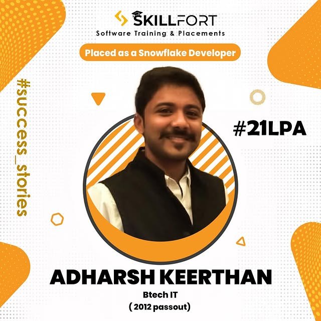 We are proud to announce that our student *ADHASH KEERTHAN* has been successfully placed with a package of *βΉ 21 Lakhs* per annum as a *SNOWFLAKE DEVELOPER* ππΌ