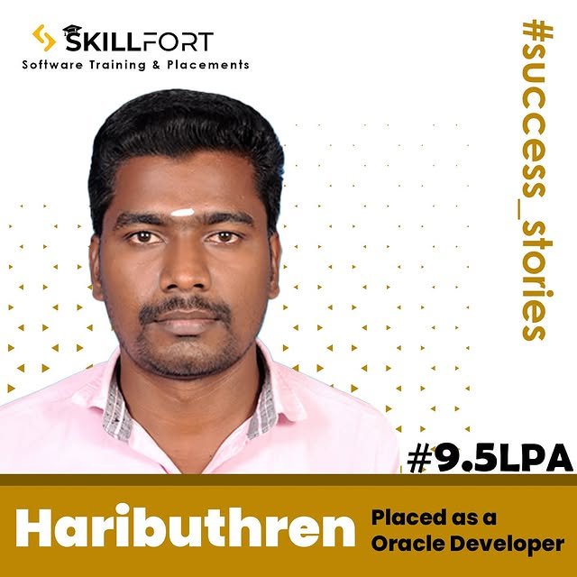 We are proud to announce that our student *HARIBUTHREN* has been successfully placed with a package of *βΉ9.5 Lakhs* per annum as a *ORACLE DEVELOPER* ππΌ