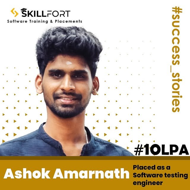 We are proud to announce that our student *ASHOK AMARNATH* has been successfully placed with a package of *βΉ10 Lakhs* per annum as a *SAFTWARE TESTING ENGINEER* ππΌ