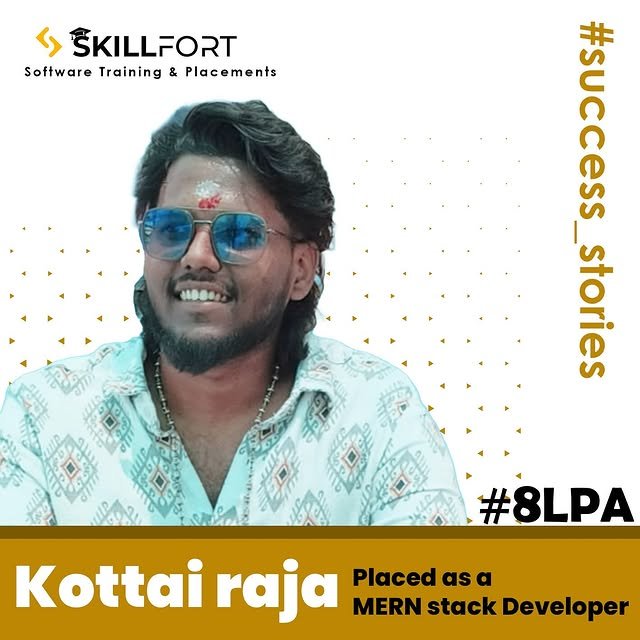 We are proud to announce that our student *KOTTAI RAJA* has been successfully placed with a package of *βΉ8Lakhs* per annum as a *MERN STACK DEVELOPER* ππΌ